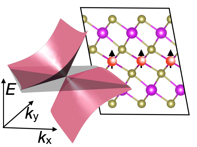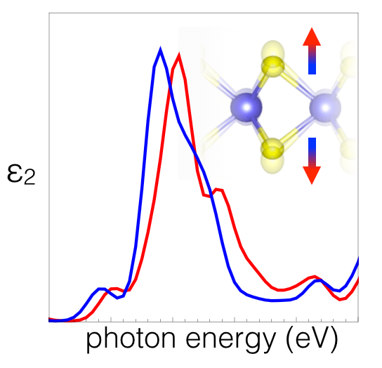 Atomically thin sheets such as graphene and dichalcogenides host a rich variety of atomic structures, orbital interactions, solid-state excitations, and desirable materials properties that derive from their 2D form. The first-principles theory that our group employs runs from left to right: one (simplified) example being the inversion asymmetric structure of monolayer MoS2 → spin-split bands from Mo d frontier orbitals → valley polarization in excitons → encoding information with valley degree of freedom. But oftentimes we have a target property in mind and work our way back left for predictive design, relying on developing efficient computational screening methods, following breadcrumb trails from solid-state chemistry, and working closely with experiments to keep our feet on the ground. Below are some of our interests.